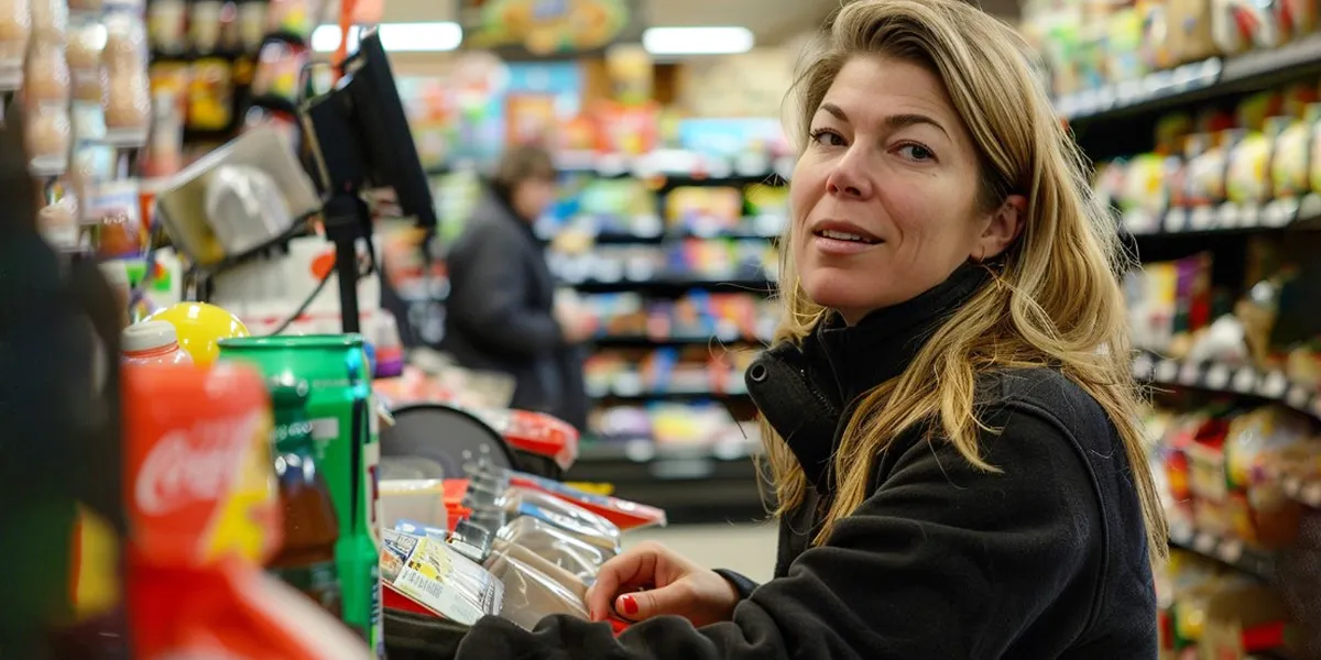 Mrs. Jenkins, a regular customer, stepped forward with her bread and milk, ready to join another line.