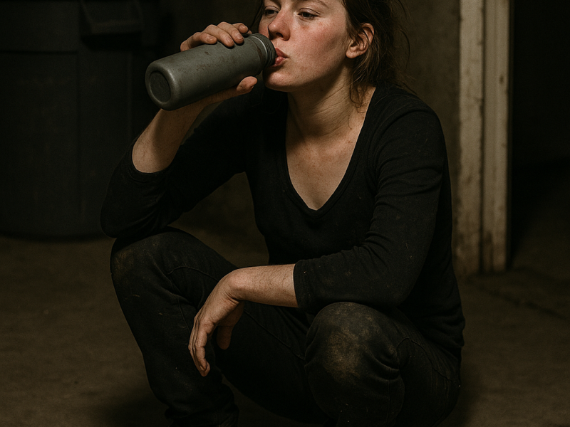 The pain is constant now, an ever-present stabbing in my back and legs that fills my awareness as I journey from the basement I live in under an abandoned house to the square.