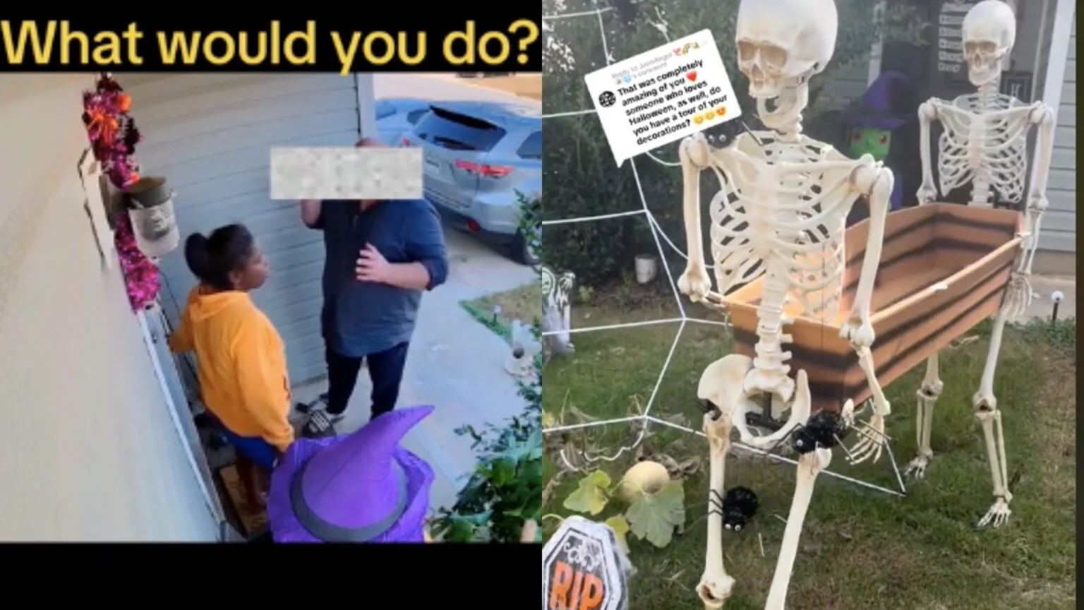 Salena shared the moment her neighbor visited her to make the request in a TikTok video. In the video, the neighbor explains, “Hey, I know you’re celebrating Halloween. My dad just got diagnosed with lung cancer. He thinks the decorations are a bit scary.” He then points to the graveyard scene and asks, “Would you mind taking just the casket out?”