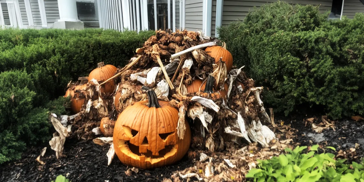 There, right in the middle of my yard, was a heap of rotting pumpkins, dead cornstalks, and broken skeleton pieces. Flies buzzed around, and the smell was unbearable. I stepped closer and saw a note stuck to one of the pumpkins.